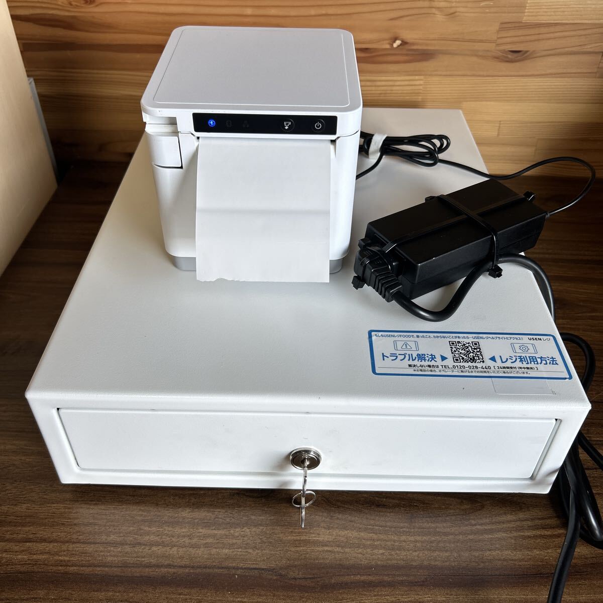 スター精密 レシートプリンターmC-Print3 MCP31L WT とレジキャッシュドロワセットとなります。パンケーキ屋さんで1年ぐらい使用で今年の7月迄使っておりました。使用度も少なく綺麗に使われており状態は良いです。引上げてきて、通電、紙送り確認済みです。大変良い状態ですが、画像10枚目に撮っておりますが、ほんの少し小さなカケがあります、勿論使用に全く支障は有りませんので、安心して下さい。