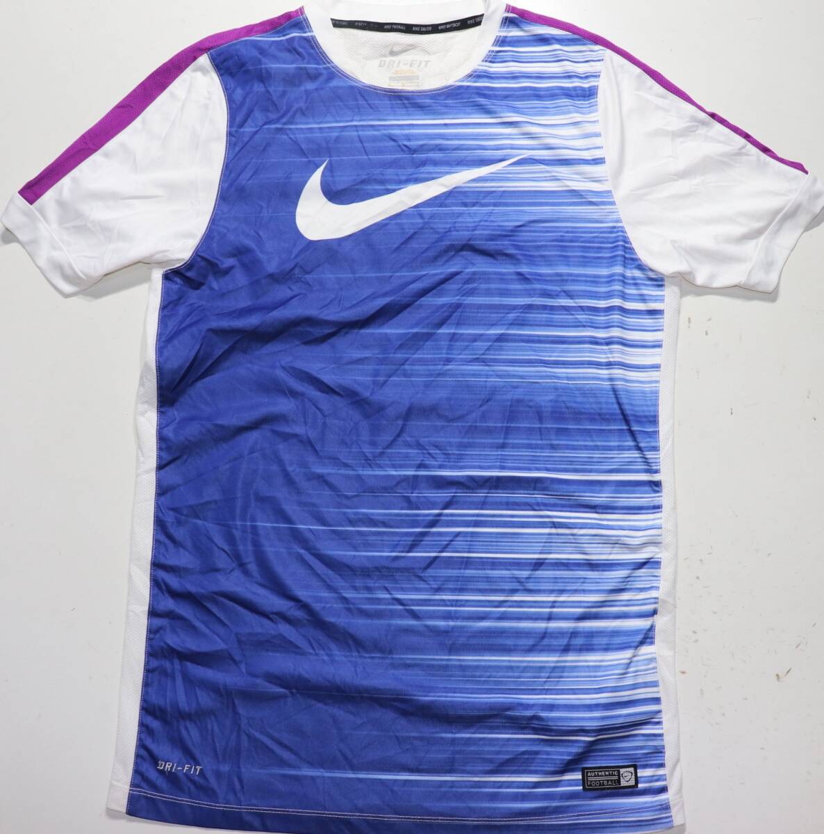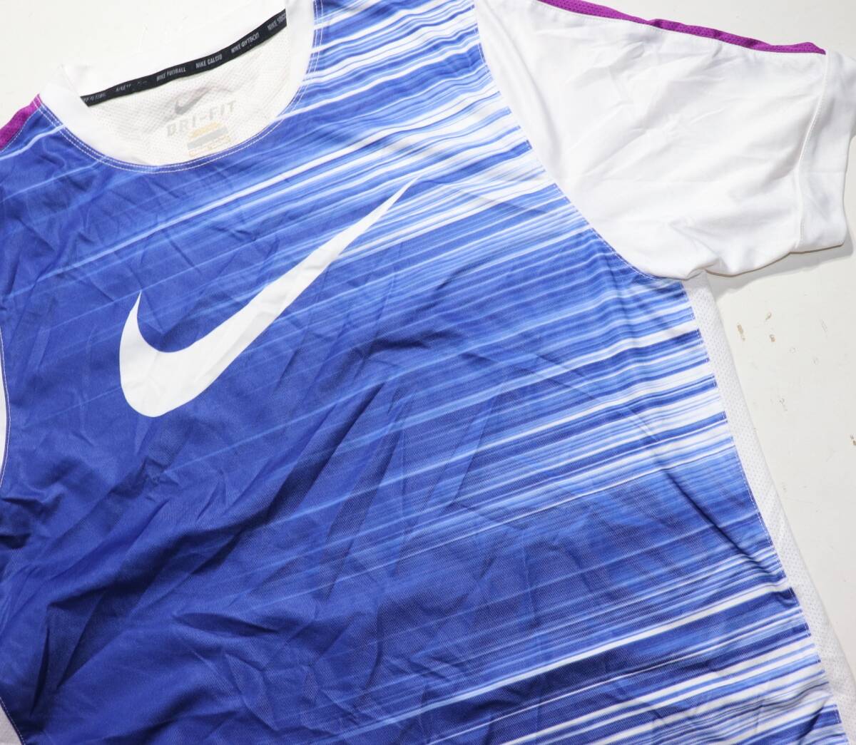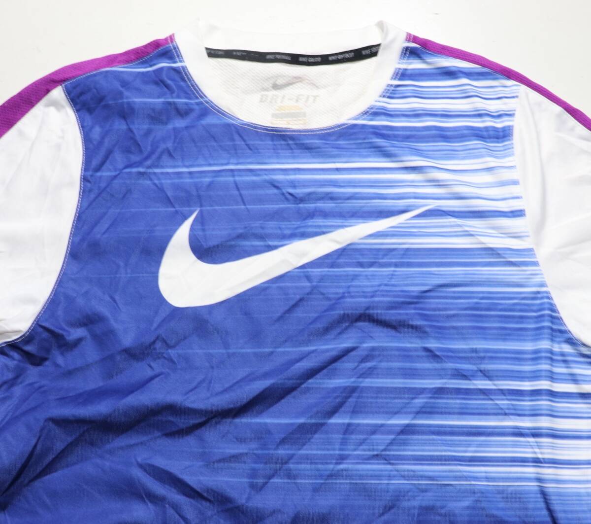 ナイキ DRI-FITTシャツです。▲色は白がベースで素材はポリエステル100%です。▲程度:USEDですか破れやダメージになるような汚れ等はありません。古着を理解していただける方の入札を希望いたします。▲サイズ:表示はLで実寸では肩幅:48センチ、着丈72センチ、身幅;49センチです。▲他にも多数出品していますので、一度ご覧ください。