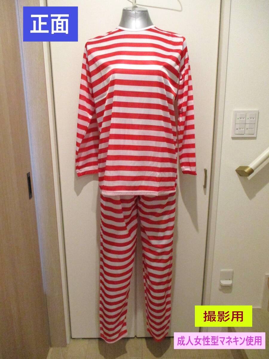 訳あり 未使用 コスプレ 囚人 服 上下 帽子 番号シール 4点セット 赤 T フリーサイズ 男 女 兼用 ハロウィン 仮装 イベント 祭 レッド 長袖
