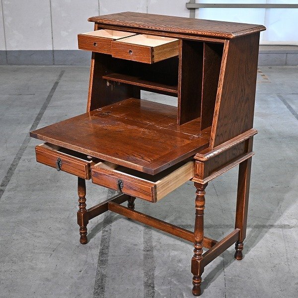 Product name: 三越家具 COUNTRY HOUSE 36万 ライティングデスク オーク無垢材 象嵌 ビューロー 英国家具風 カントリーハウス ブルージュ 花柄