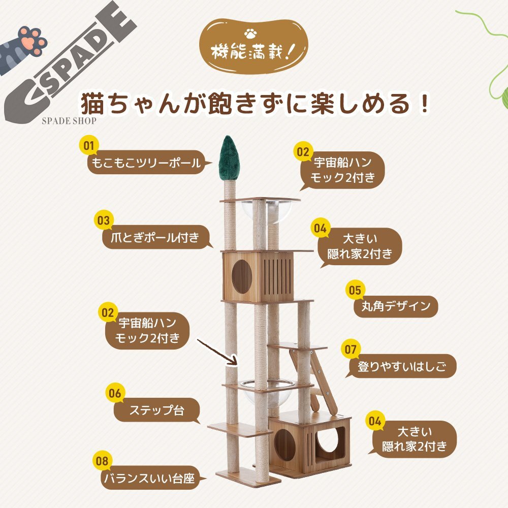 Product name: 【国内発送】キャットタワー 多頭飼い 大型 木製 据え置き 全高196cm 麻紐 宇宙船ハンモック付き 隠れ家 展望台 麻紐 猫ハウス 爪とぎ
