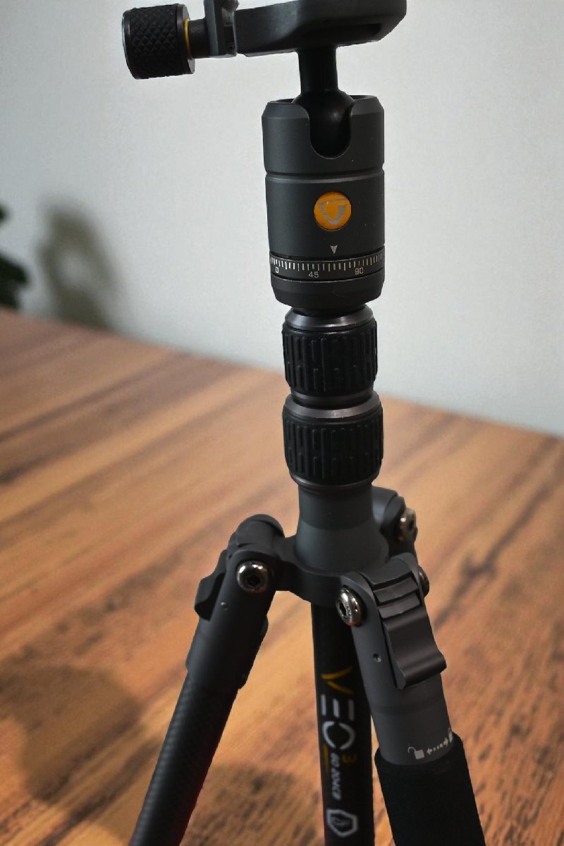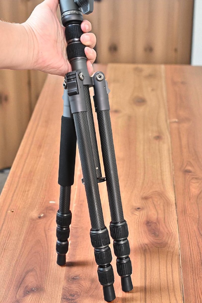 軽量で持ち運びやすいカーボン製トラベル三脚で、コンパクトに折りたためるのが特徴です。