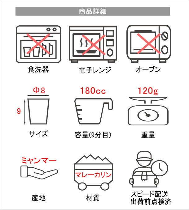 使用方法 : 電子レンジ)× 食洗機)× オーブン)×