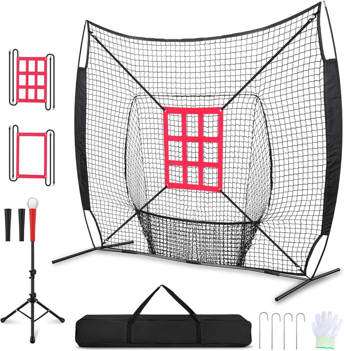 RAYZESTTOP バッティングネット 野球ネット練習用 トレーニング ピッチングネット スチール製 硬式 軟式対応 打撃 投球 防球ネット ソフトボール練習ネット 組み立て簡単 折り畳み 持ち運びに便利 収納バック付き バッティングティー+ 9マス枠+口字型枠付き