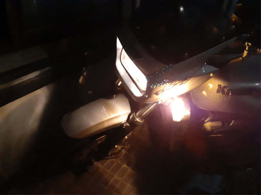 アッパーカウルがひび割れて補修歴ありです(飾りでごまかしている部分)。