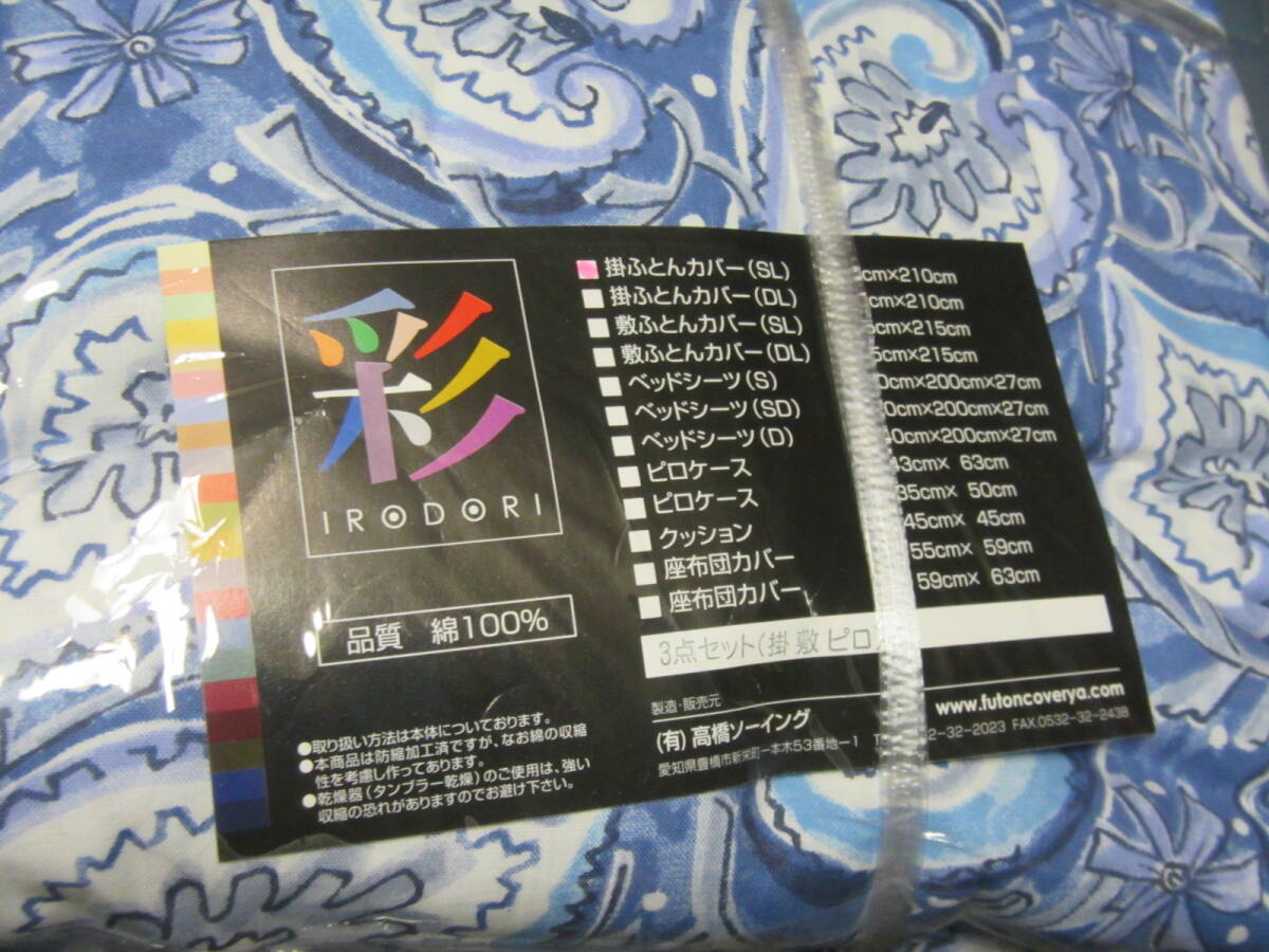 未開封 未使用 掛け・敷きふとんカバー (ブルー柄) 日本製 綿100% 掛け150×210cm 敷き105×215cm 送料込み 枕カバー入り?