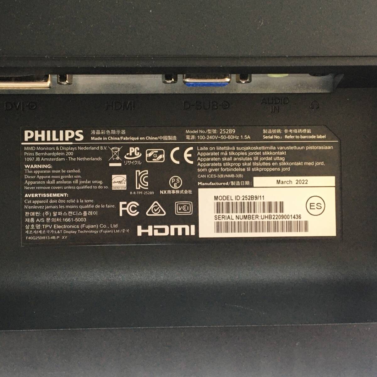 Product name: ☆【美品】PHILIPS 252B9/11 ワイド液晶モニター 25インチ WUXGA(1920x1200) 入力端子『HDMI/Displayport/DVI/D-Sub』 動作品