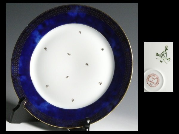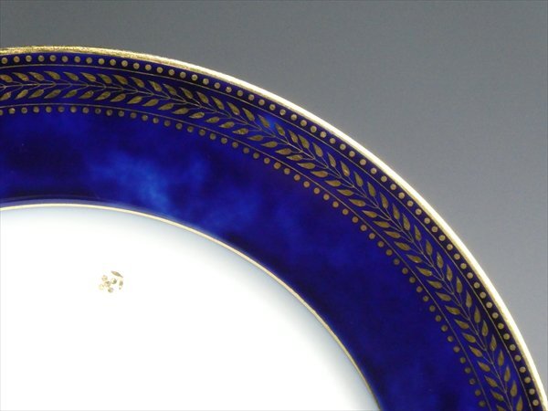 Product name: セーブル 西洋陶磁器 最高峰ブランド SEVRES クラウデッドブルー コバルト 金彩 フラワー アラベスク プレート 大皿 25cm n526