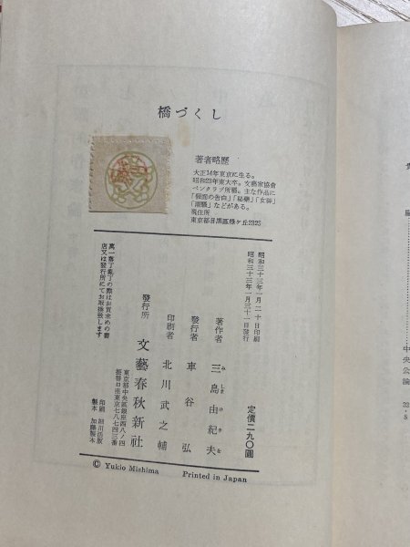 Product name: 橋づくし 初版  三島由紀夫