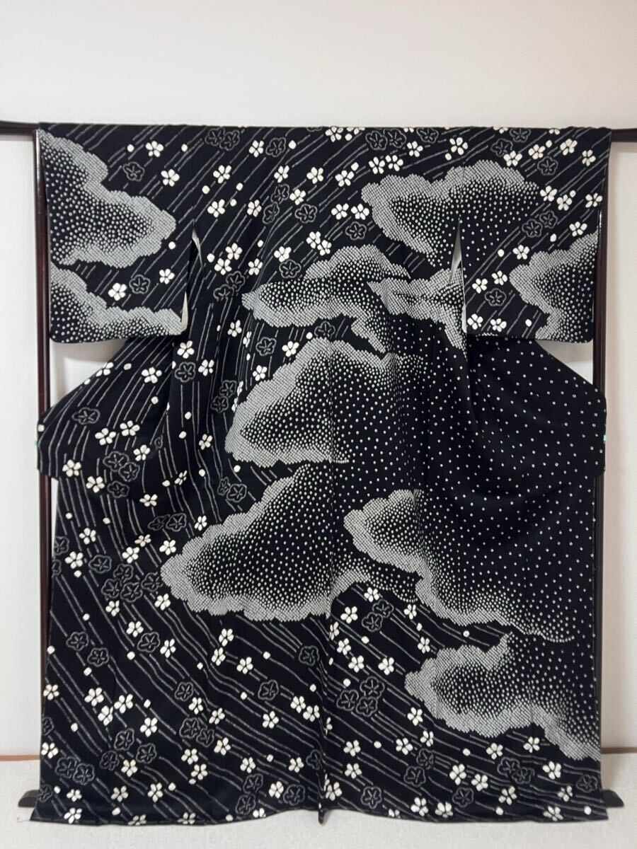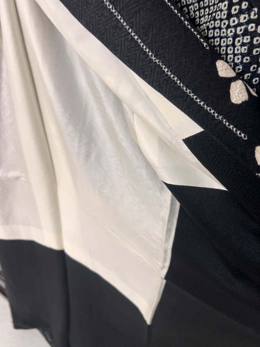 Product name: 逸品 絞り 着物 黒白 訪問着 総絞り 着丈160cm 正絹 和装 呉服 しつけ糸付き