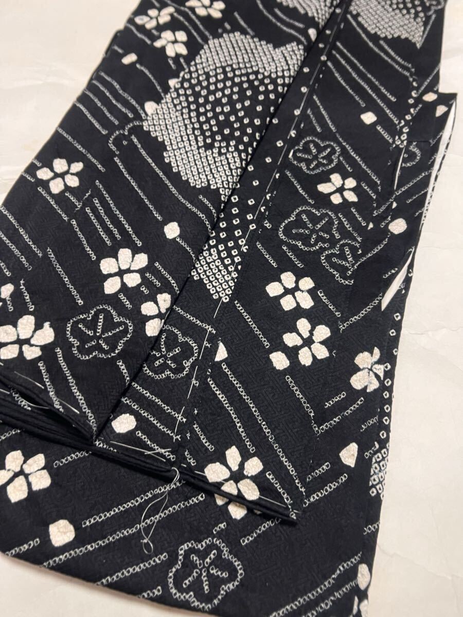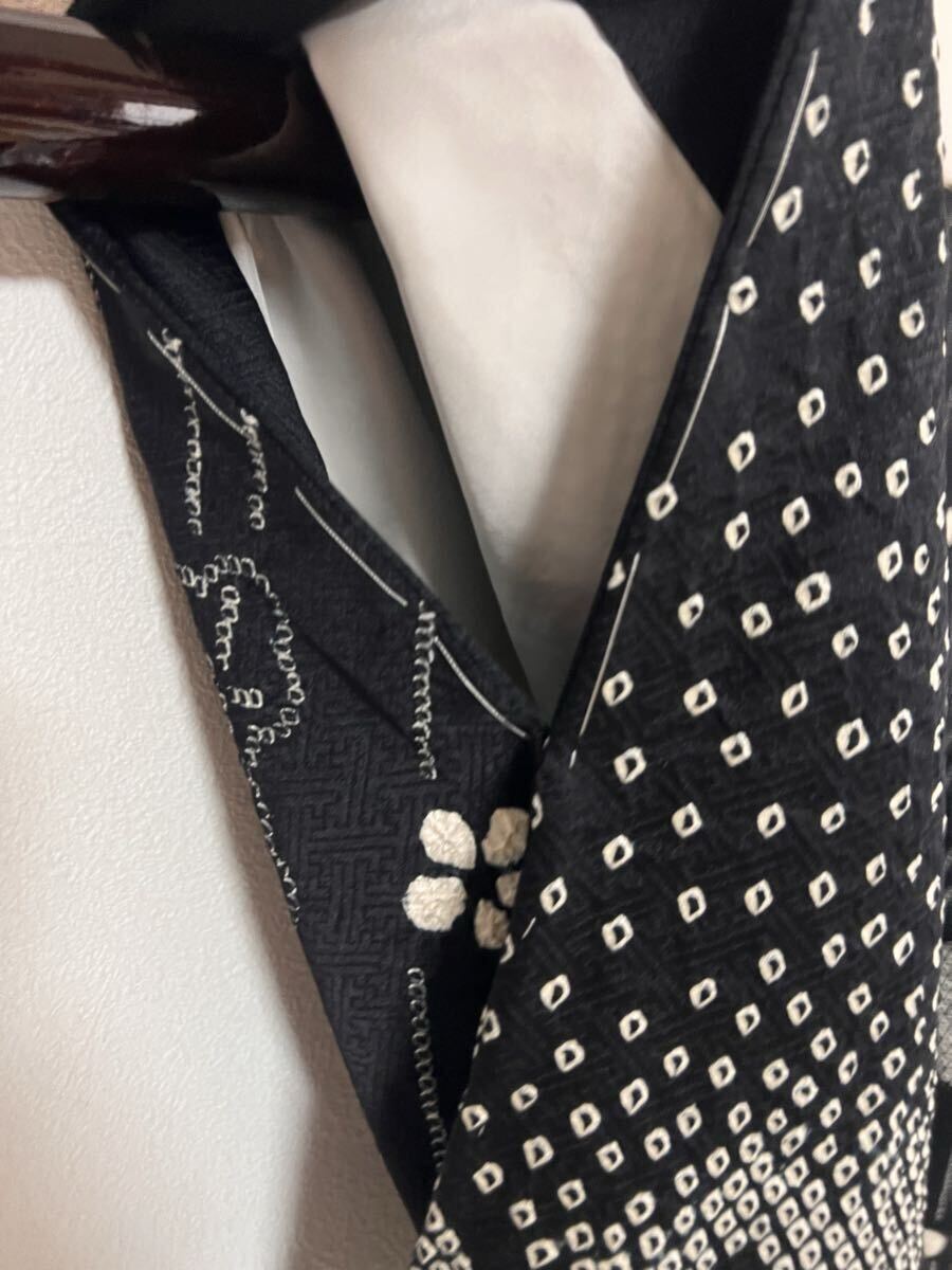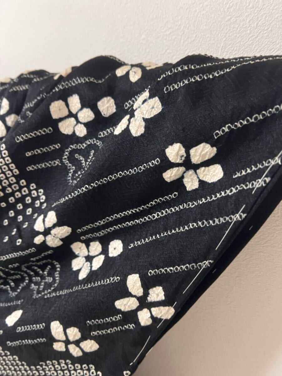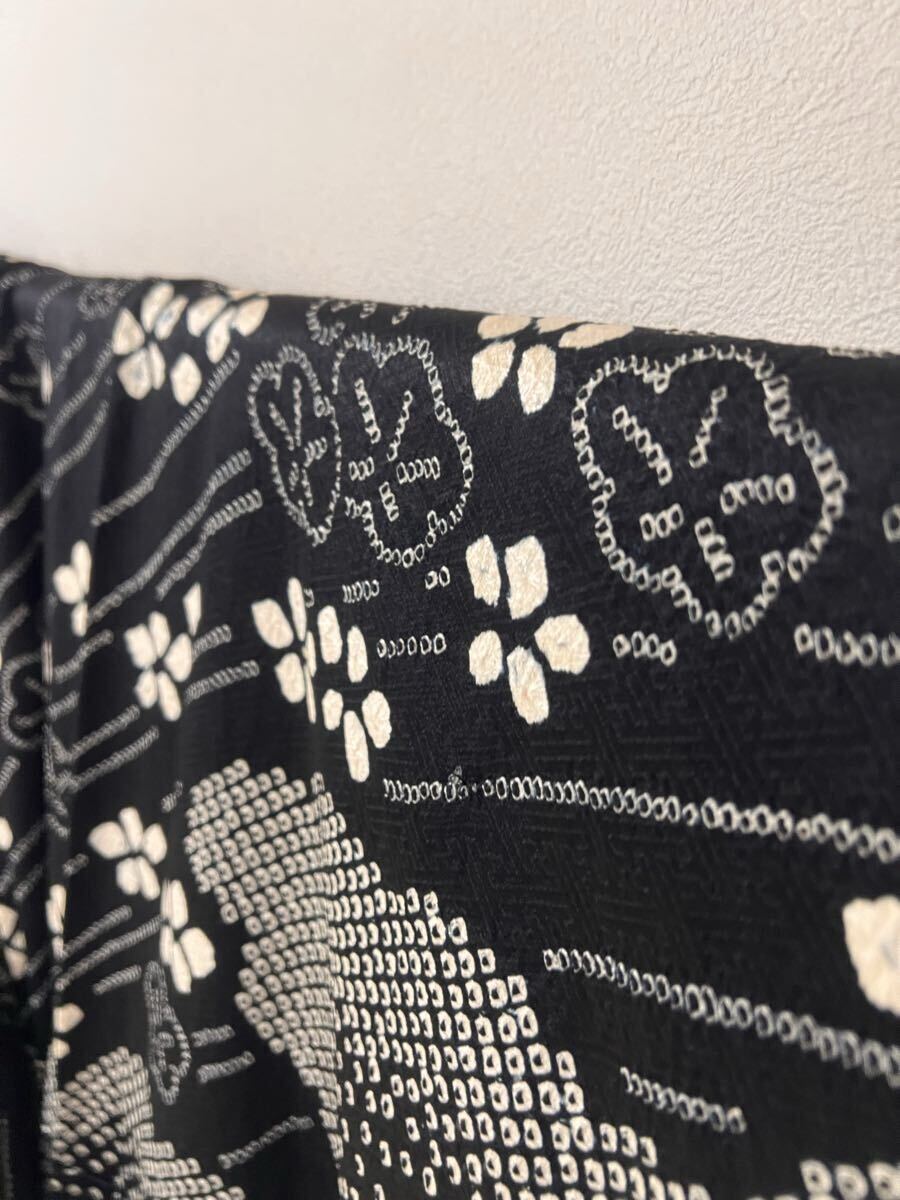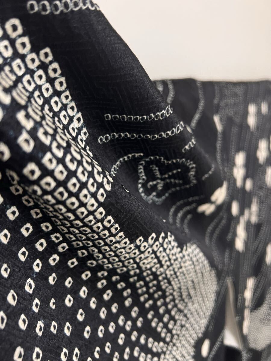 逸品 絞り 着物 黒白 訪問着 総絞り 着丈160cm 正絹 和装 呉服 しつけ糸付き