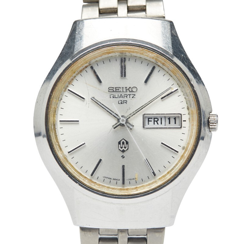 セイコー 3針 デイデイト 腕時計 3863-7010 クオーツ シルバー文字盤 ステンレススチール レディース SEIKO 【中古】