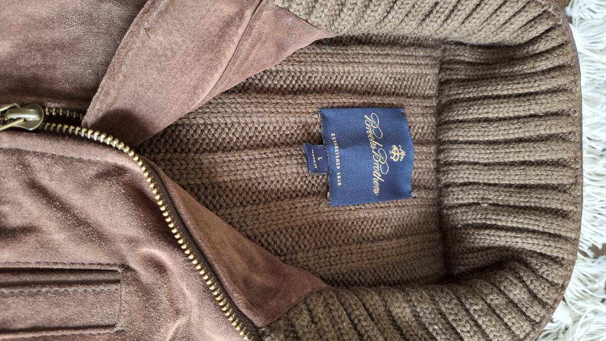★BROOKS BROTHERS★前面 羊皮(スエード調)レザー★袖、背面wool100%★ドライバーズニットジャケット★茶系★サイズL★暖かいです