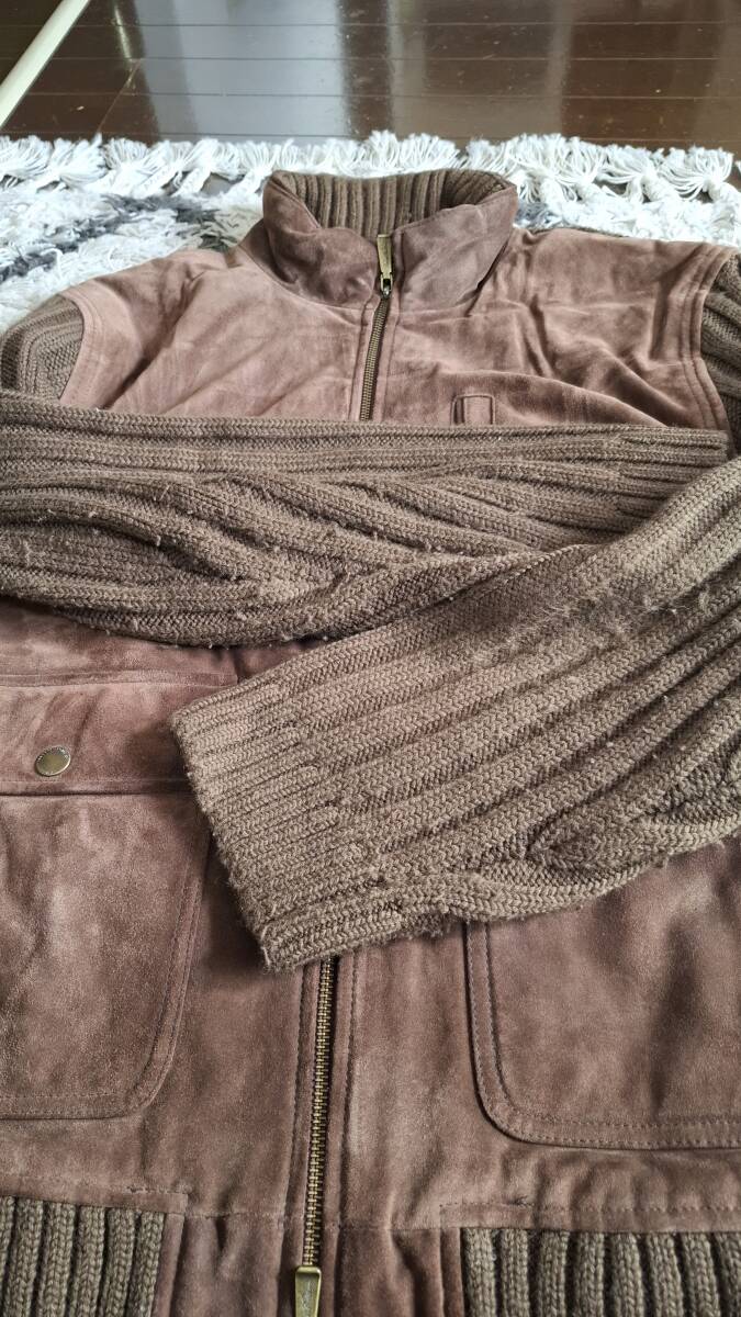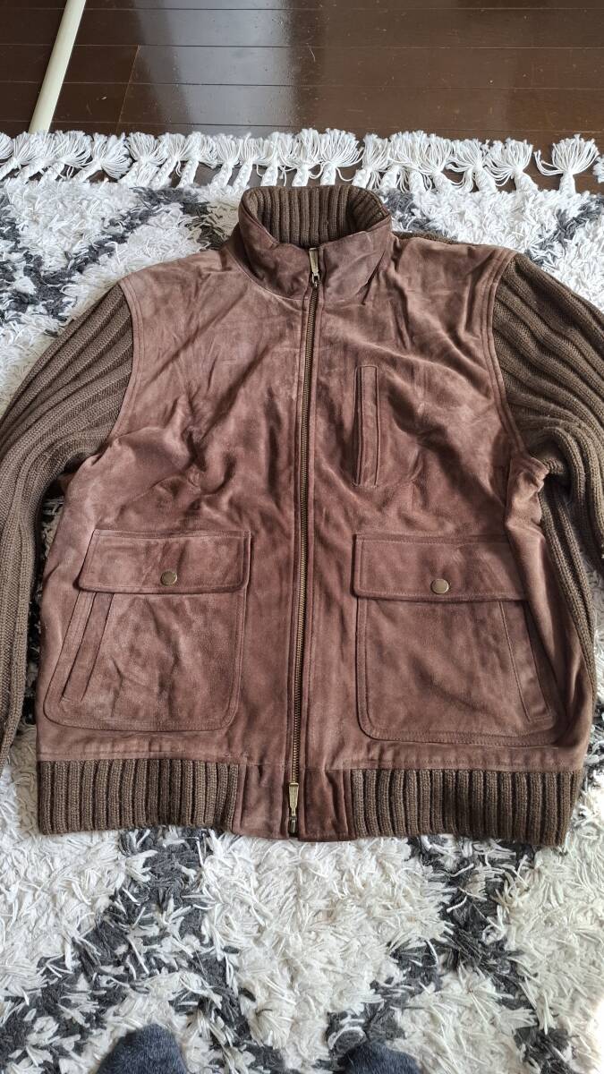 Product name: ★BROOKS BROTHERS★前面 羊皮(スエード調)レザー★袖、背面wool100%★ドライバーズニットジャケット★茶系★サイズL★暖かいです