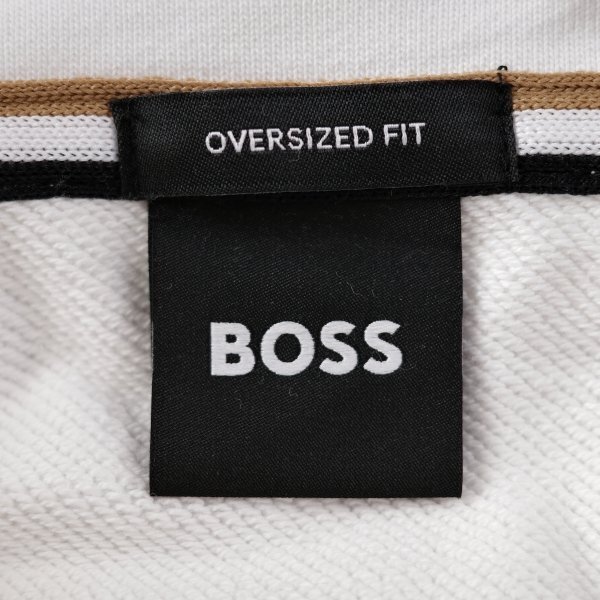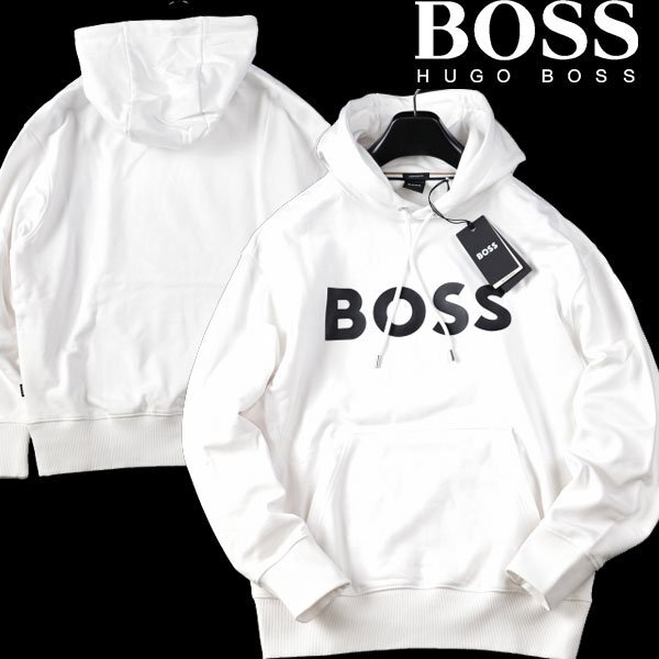 定価4.1万 BOSS ボス メンズ 最高級ライン コットン綿 ロゴ プルオーバーフーディー M ヒューゴボス パーカー 白 オーバーサイズ