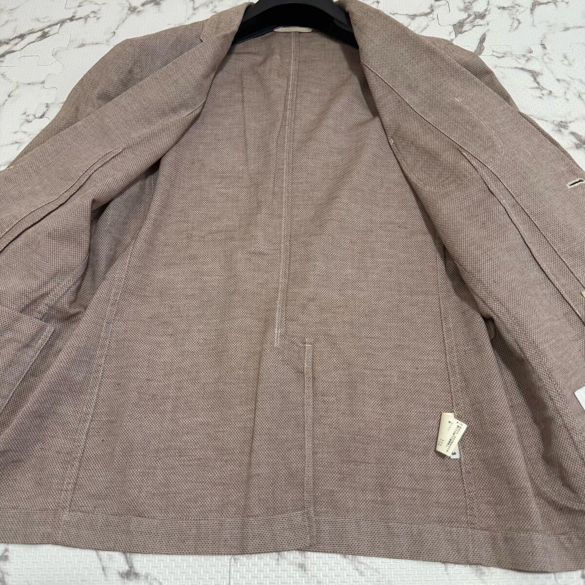 ★希少カラー★タケオキクチ【TAKEO KIKUCHI】テーラードジャケット ボルドー リネン混 秋色 バーズアイ 煌びやかボタン L