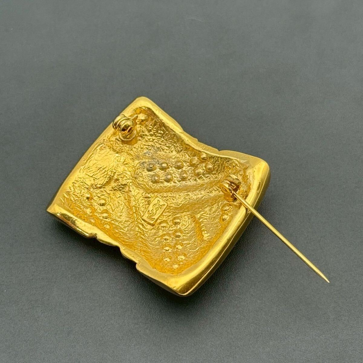 【希少・極美品】Yves Saint Laurent イヴサンローラン YSL ブローチ スクエア ラインストーン カラーストーン コスチュームジュエリー