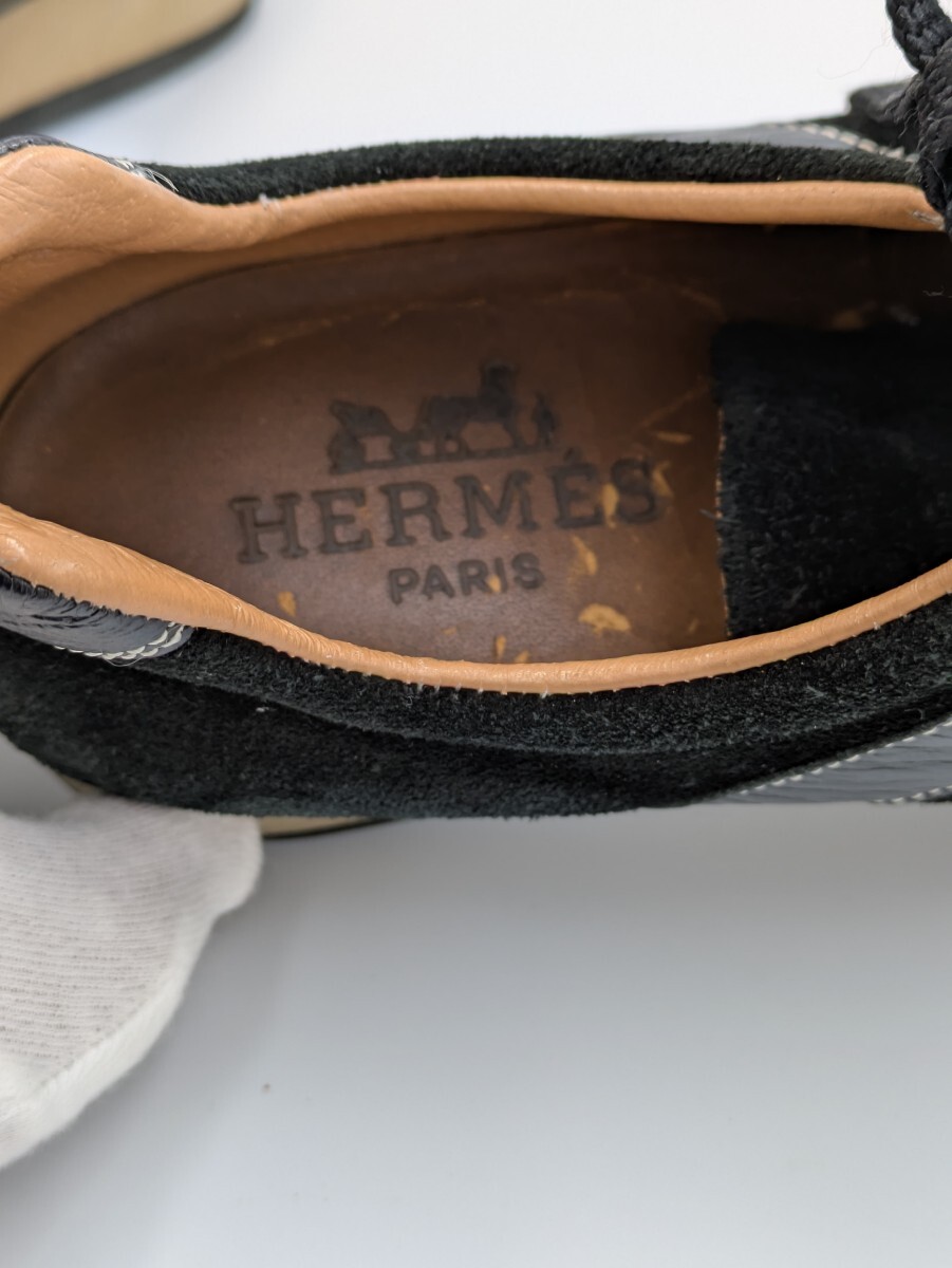 HERMS エルメス スエード×レザー スニーカー ブラック レディース 革靴