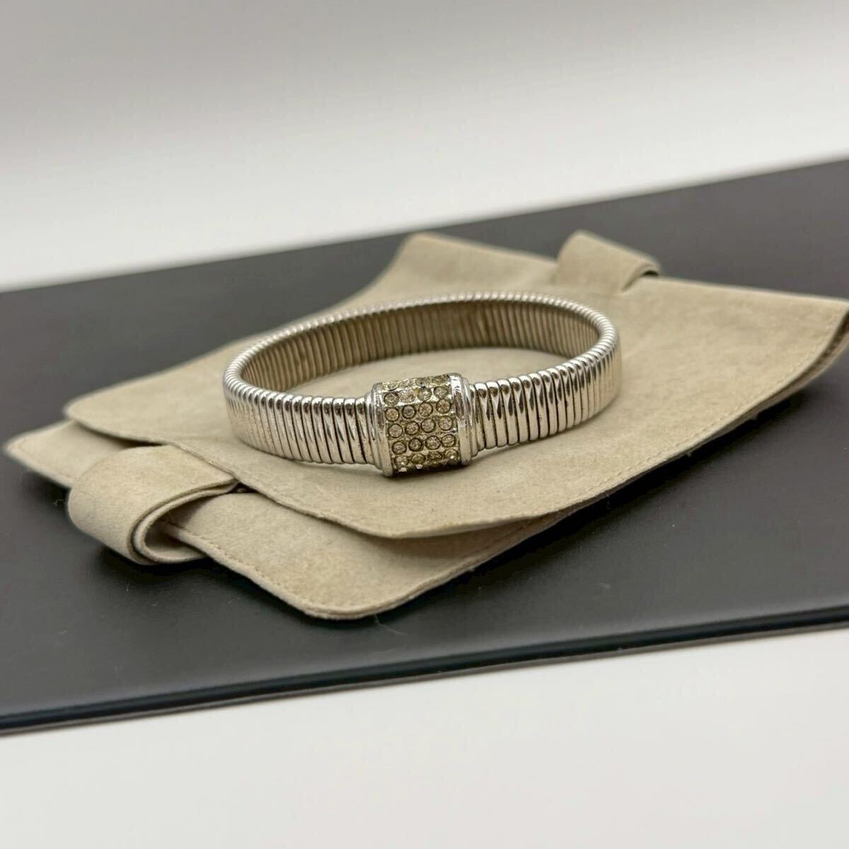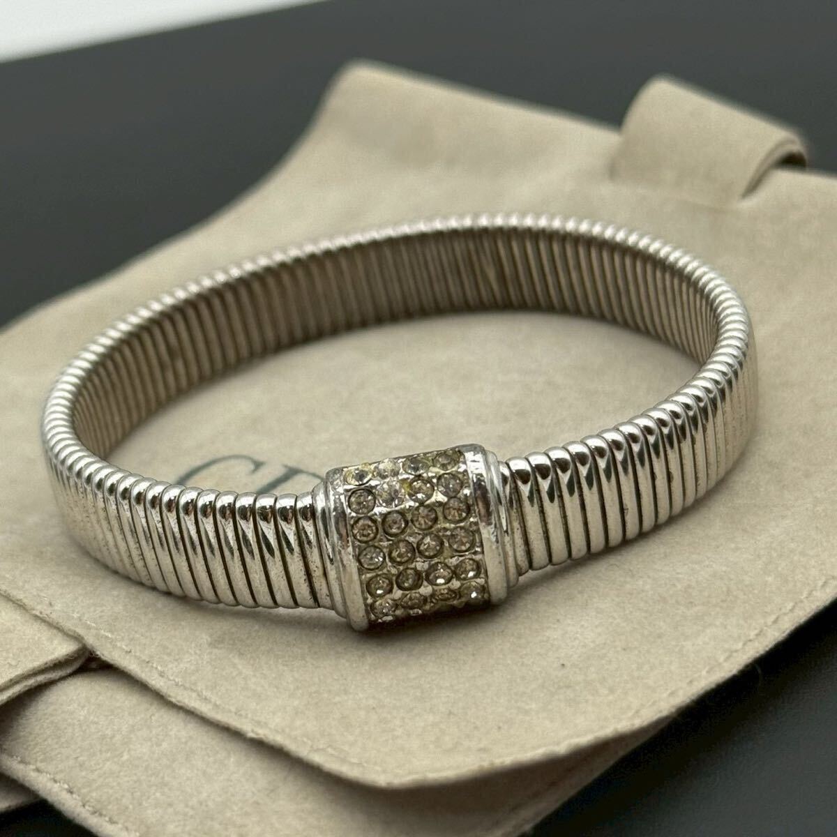 【希少・袋付き】Christian Dior クリスチャンディオール ブレスレット バングル クリスタル ラインストーン シルバー ヴィンテージ