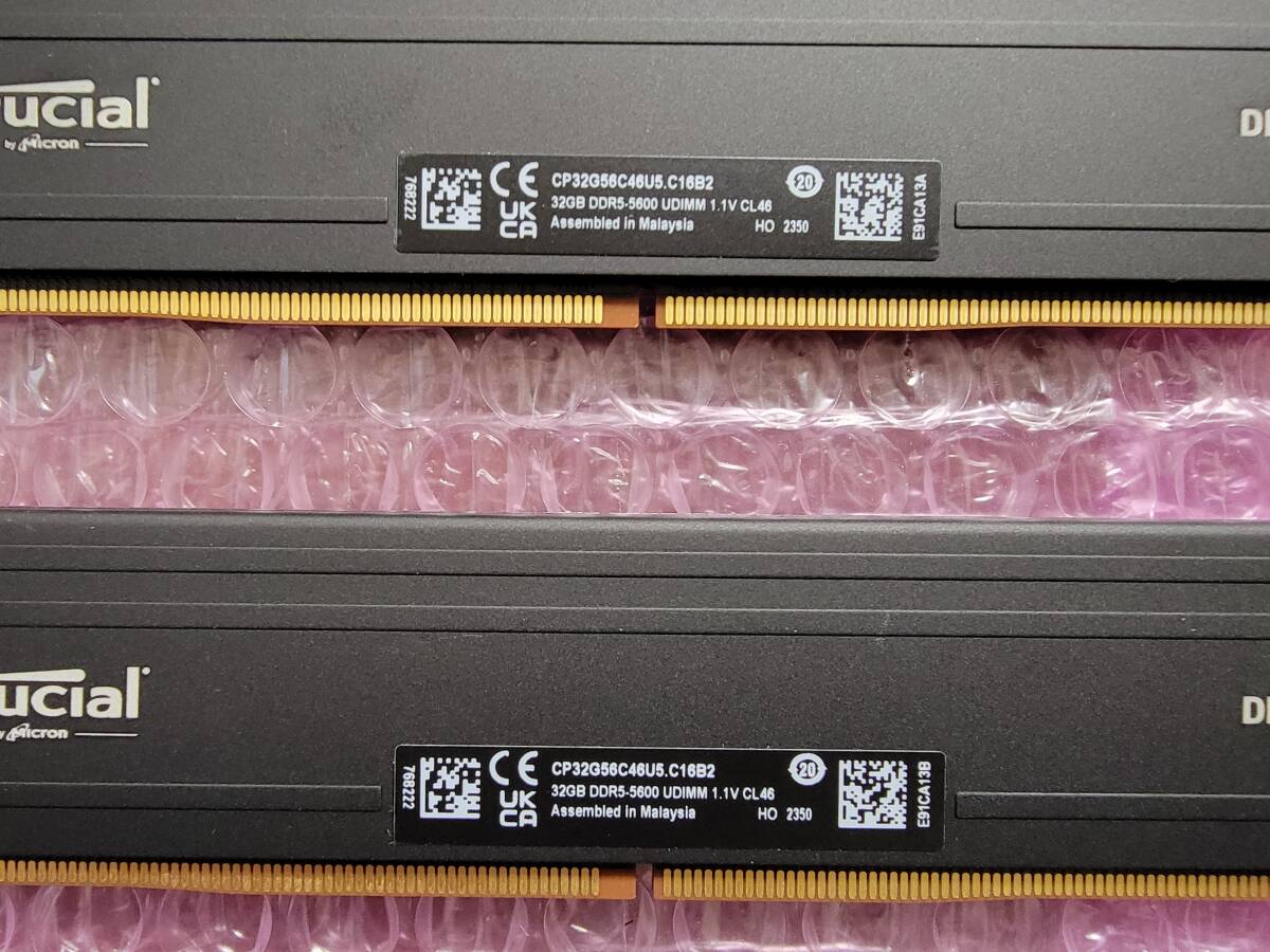 Micron Crucial DDR5 Pro PC5-5600 UDIMM デスクトップ用 32GBx2 64GBセット 動作OK