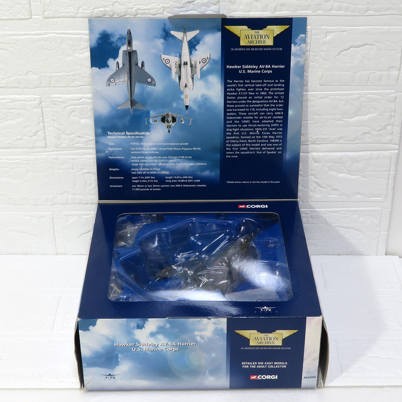 【玩具航空機保管品】CORGI / コーギー:アメリカ海兵隊 ホーカー・シドレー AV-8A HARRIER / ハリアー:1/72 ダイキャスト