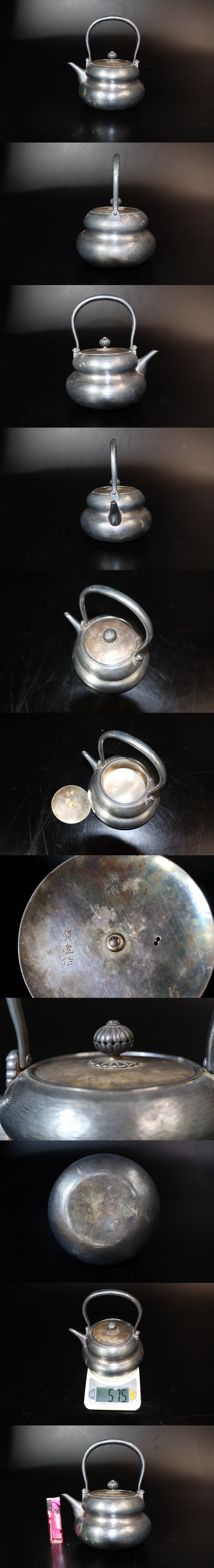 Product name: 【江】廣造作 純銀製 瓢形霞槌目銚子 銀瓶 重量約575g 純銀刻印 在銘 共箱 古美術品(茶道具茶器湯沸薬缶)X1867 CDTvbhf JTNBoklp