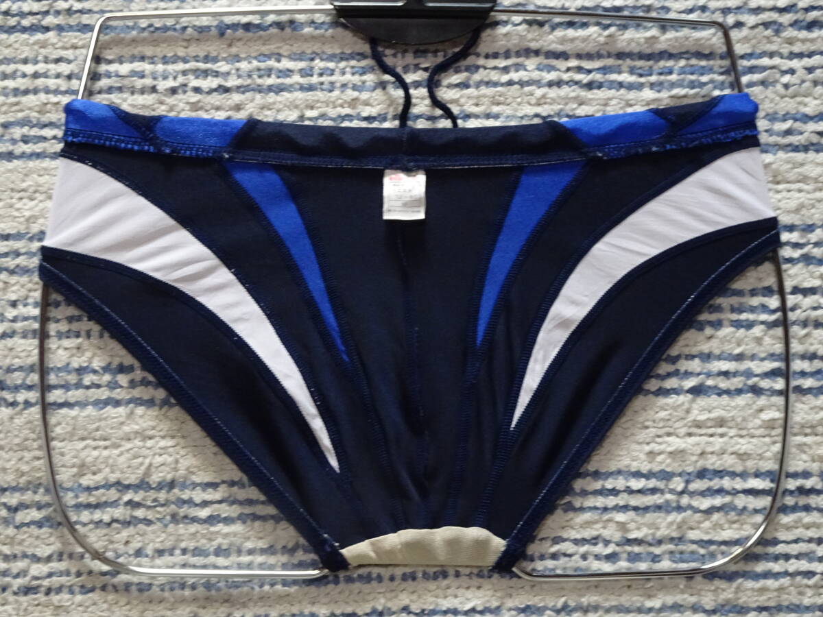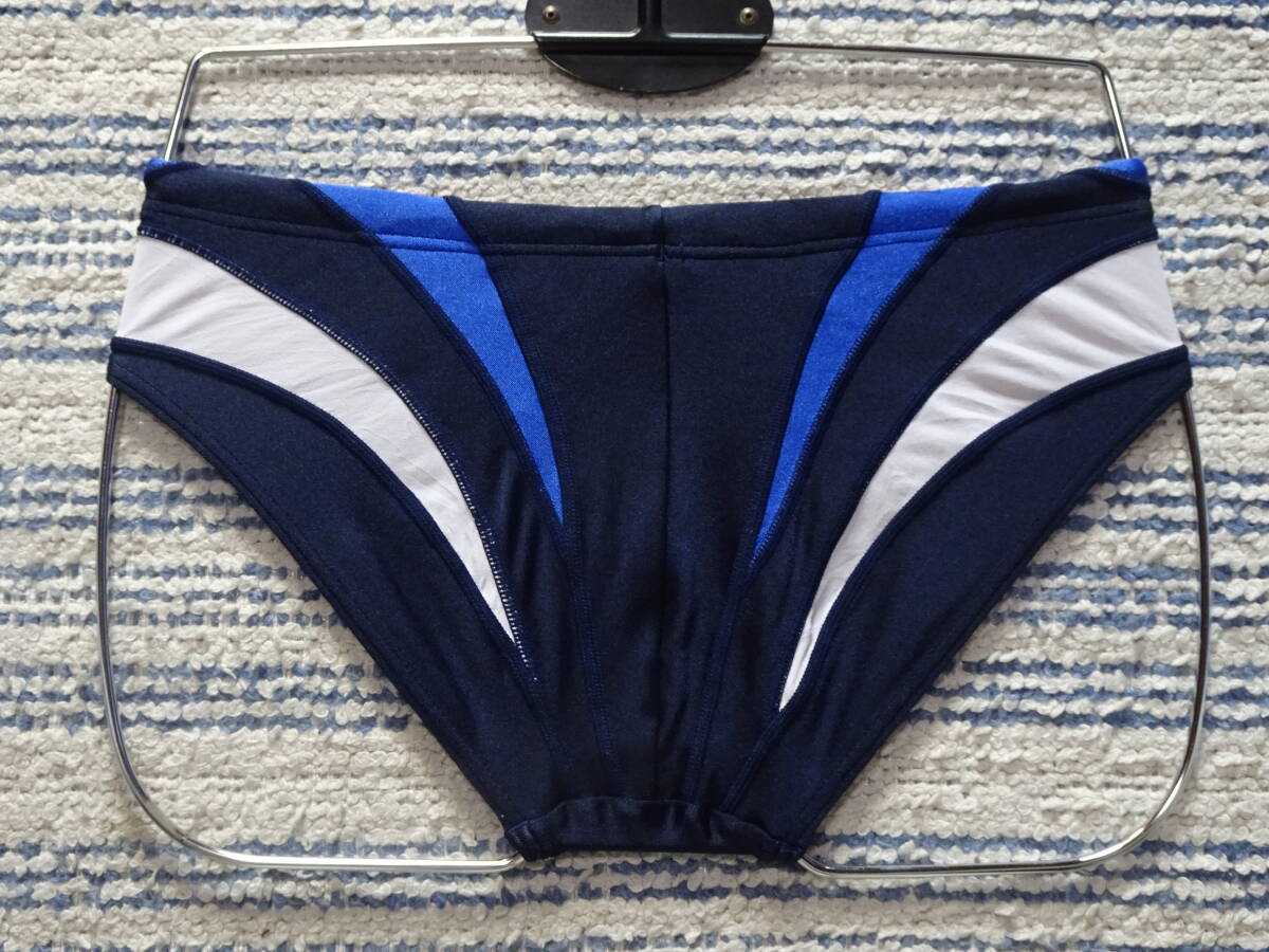 402 ellesseエレッセ スイムビキニパンツ SizeM ネイビーベース×ホワイト・ブルーのVカットゾーンの切り返しデザイン 中古