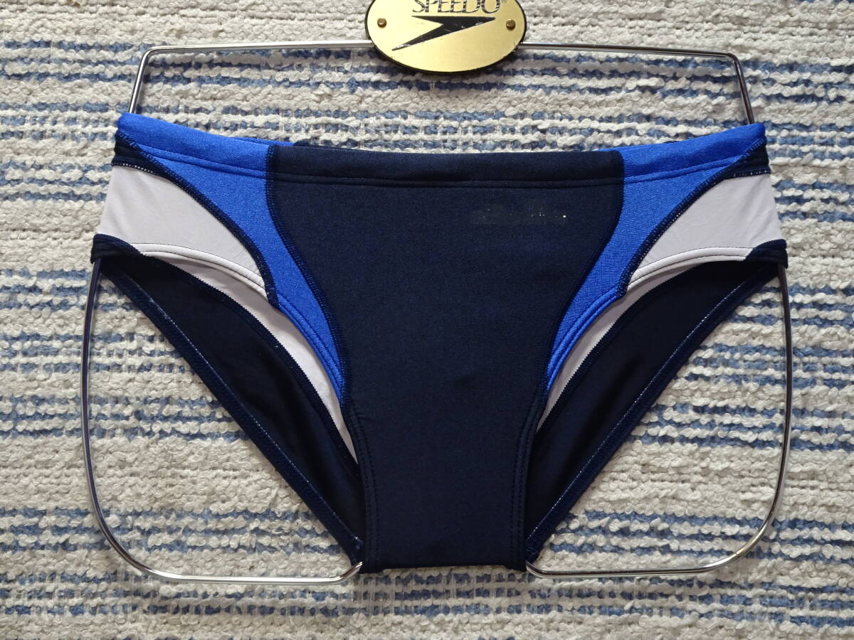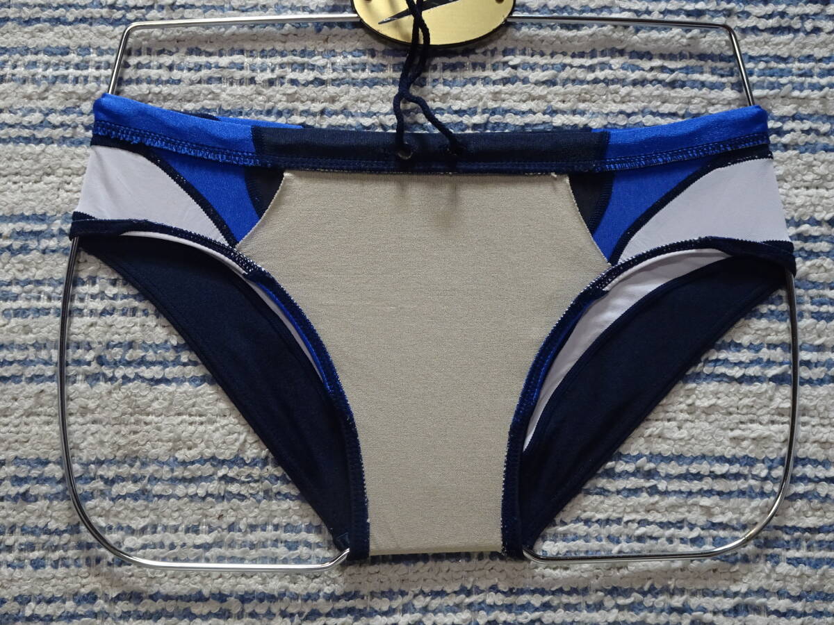 Product name: 402 ellesseエレッセ スイムビキニパンツ SizeM ネイビーベース×ホワイト・ブルーのVカットゾーンの切り返しデザイン 中古