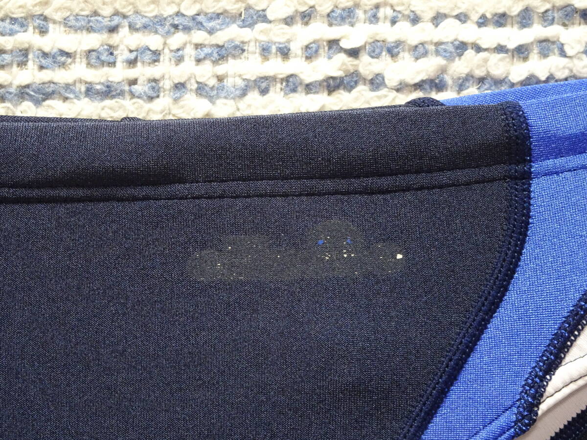 カラーは、 ネイビーベースにホワイトとブルーのVカットゾーンの切り返しデザインです。