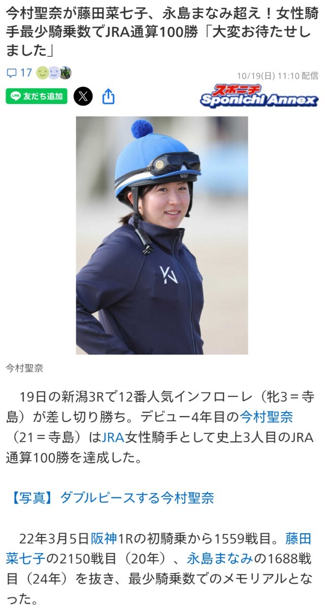 今村聖奈騎手直筆サインパネル ブラビオ 4歳以上1勝クラス JRA初勝利 藤田菜七子、永島まなみに次ぎJRA通算100勝達成wスマホ不正の人ww