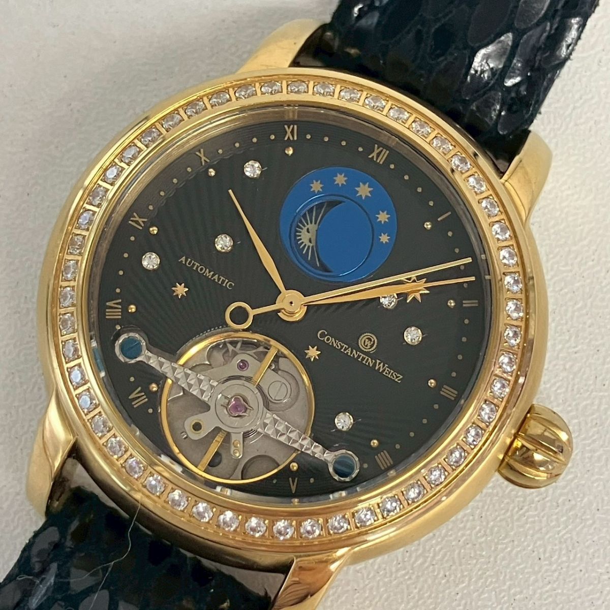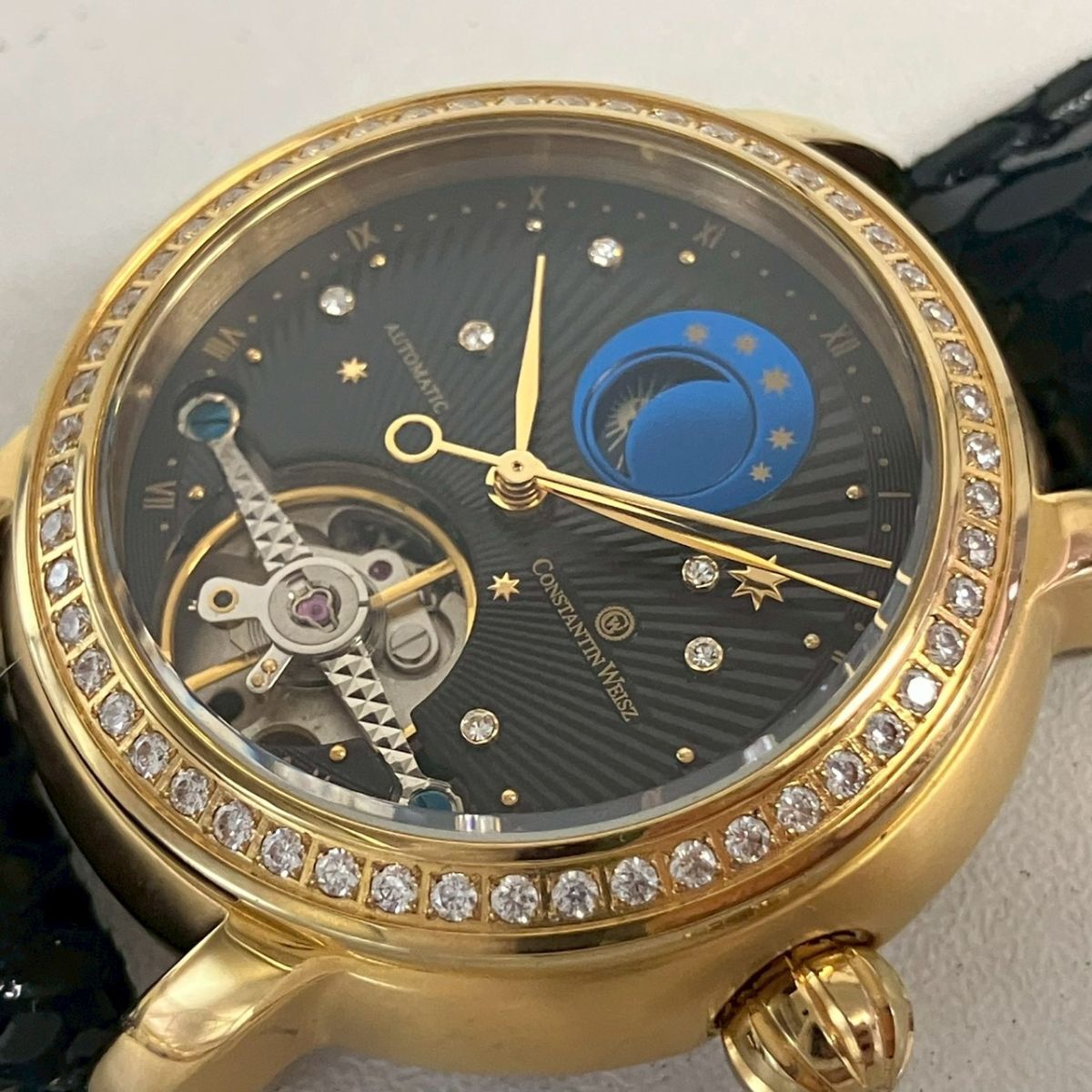 T023-P4-925◎ CONSTANTIN WEISZ コンスタンティンワイズ メンズ腕時計 11L095CW AUTOMATIC 裏面スケルトン ムーンフェイズ 稼働 KA