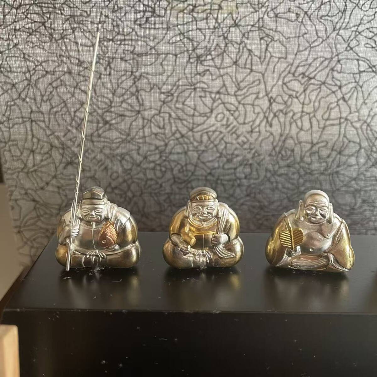 武比古作 純銀製 七福神像セット シルバー 縁起物 置物 ガラスケース 立札付き 商売繁昌 伝統工芸 金属工芸 恵比寿 大黒天 インテリア