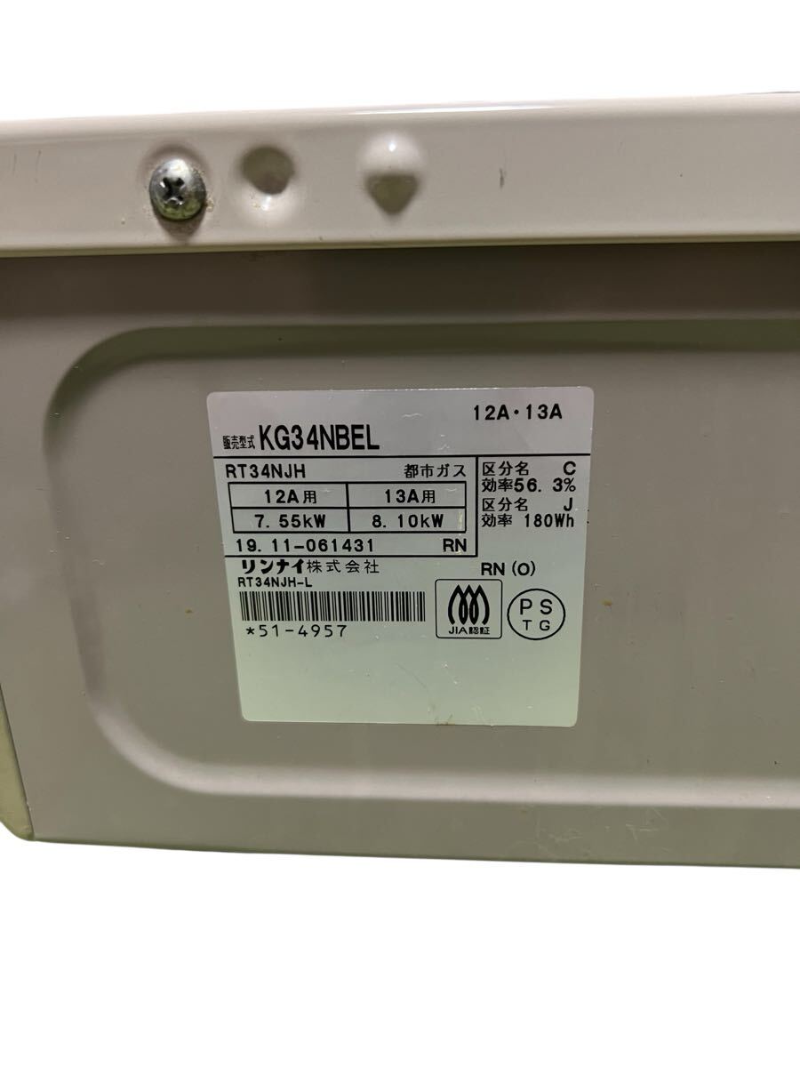 Product name: 【動作品】Rinnai リンナイ ガスコンロ ガステーブル 都市ガス KG34NBE RT34NJH 2019年製