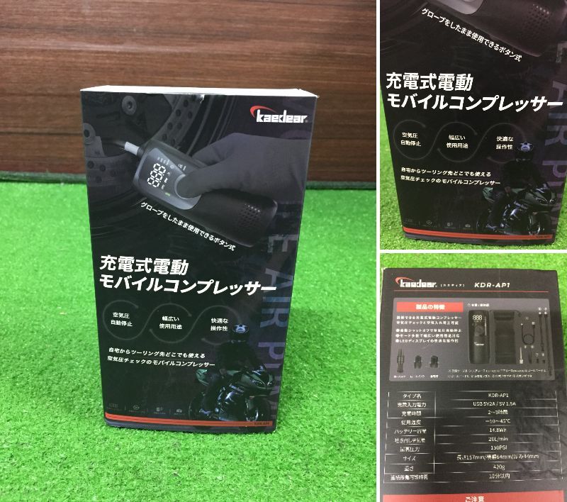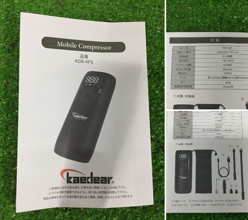 Product name: Kaedear カエディア モバイルコンプレッサー KDR-AP1 ブラック 充電式電動エアーポンプ 箱入り 26-20