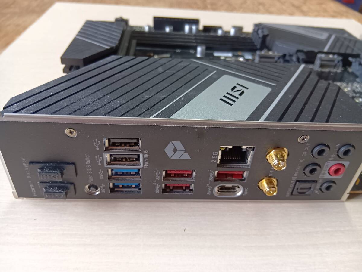 2、マザボ下側のM.2ヒートシンク固定ネジ1本が代替品使用してるのとその周辺傷があります。