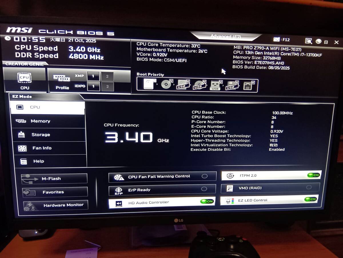 コメントあり一旦取り消し改めて組み上げ再確認しましたがBIOS立ち上がりました。(画像10)