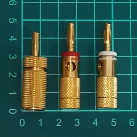 ①メーカー型番不明 バナナプラグ 赤・白 各2本②audio-technica オーディオテクニカ バナナプラグ 赤・白 各2本