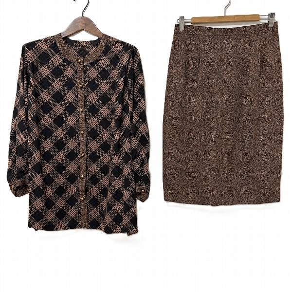 Product name: #anc ジュンアシダ junashida セットアップ 11 茶 黒 シルク チェック ブラウス 丸首 スカーフ付き タグ付き 美品 レディース [957273]