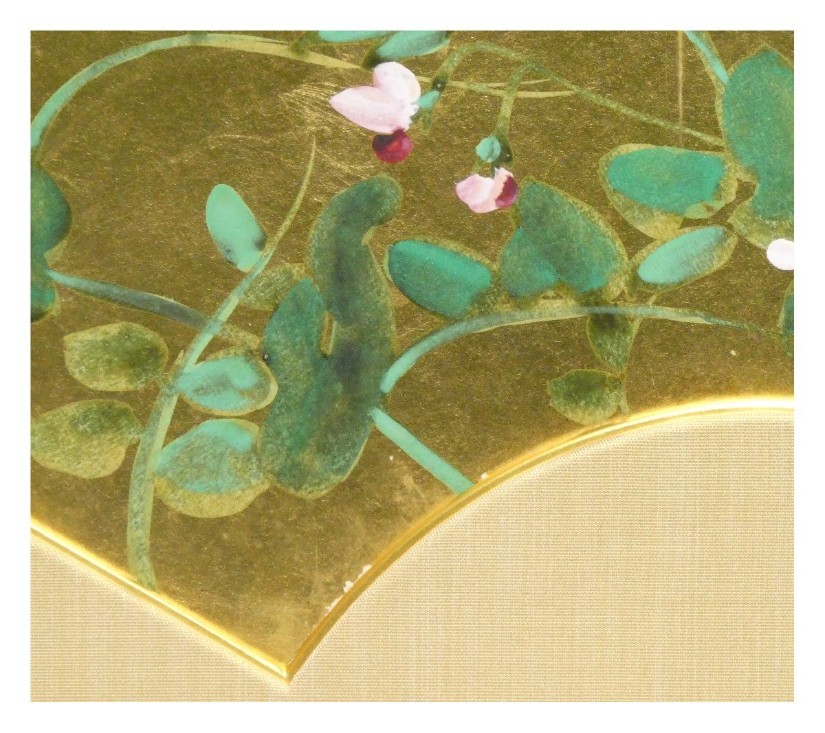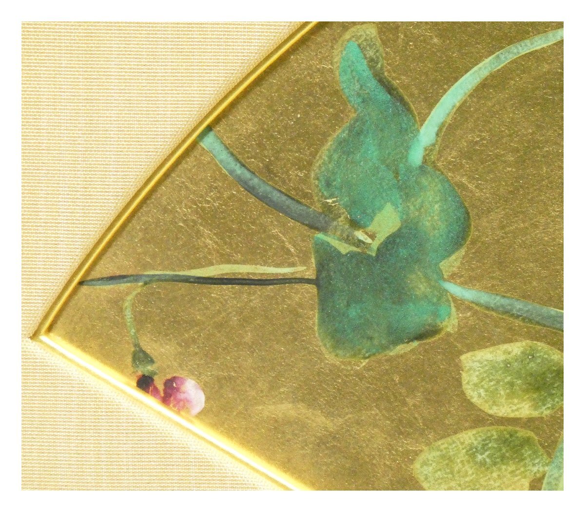扇面左下に金箔のハガレ・葉一カ所に極小スレが見られますが、