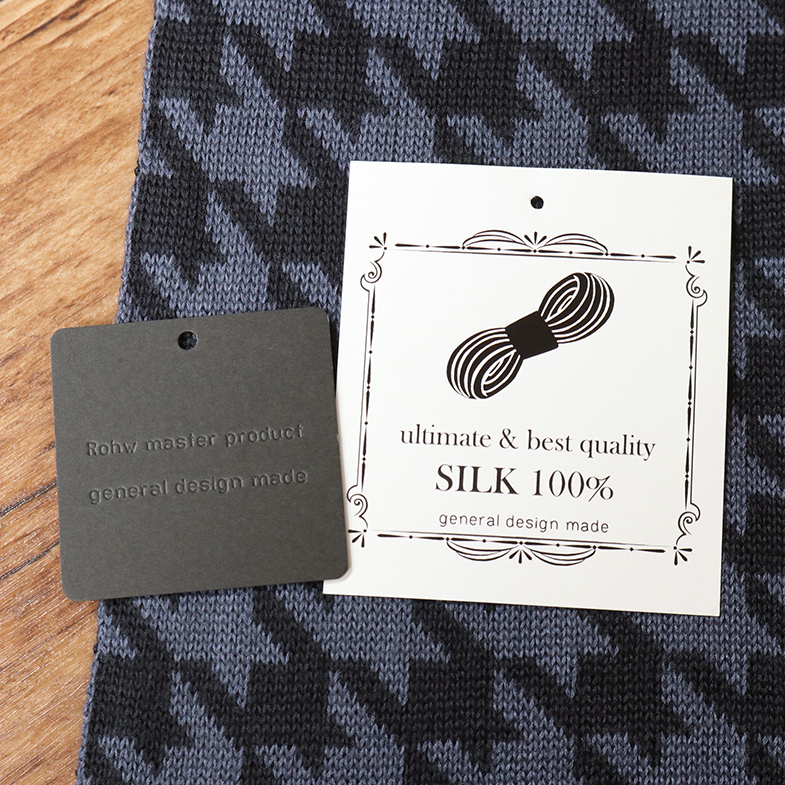 1円/general design made/シルク100% ハウンドトゥース ニット マフラー 日本製 上質 ジェネラルデザインメイド 新品/紺/ネイビー/jh332/