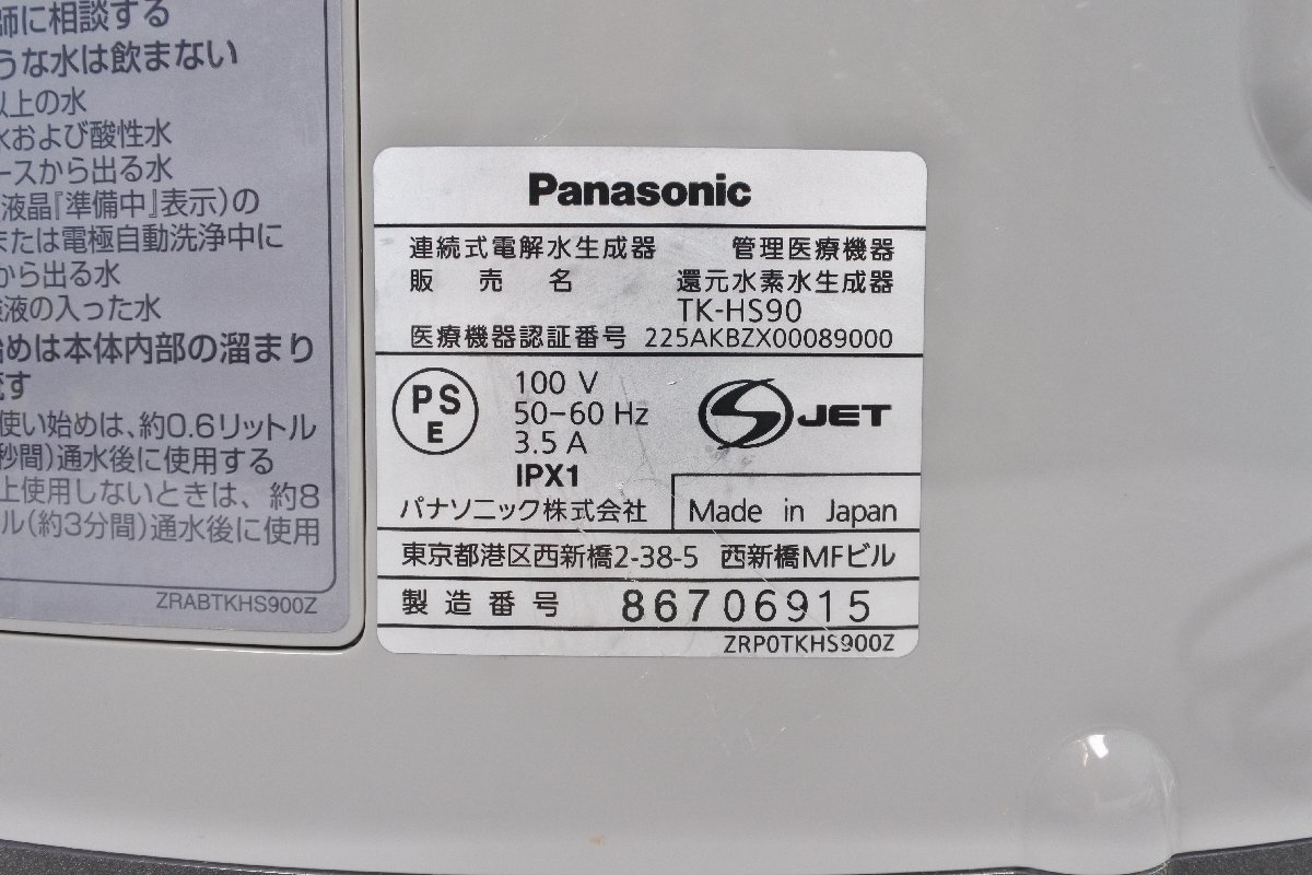 【大清水67-1-1020】Panasonic パナソニック 還元水素生成器 TK-HS90 ジャンク同梱不可
