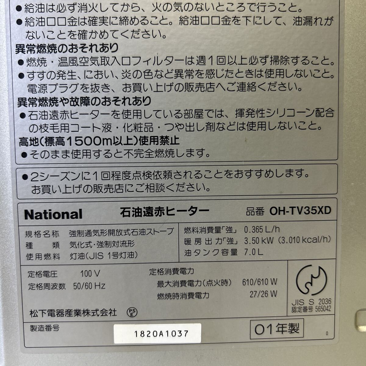 ナショナル 石油遠赤ヒーター 中古 OH-TV35XD 強制通気形開放式石油ストーブ 油タンク容量7リットル 動作品