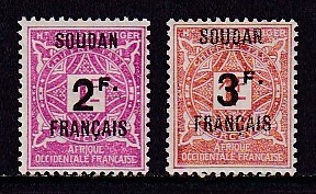 30 仏領スーダン【未使用】<「1927 SC#J9-J10 (不足料) 加刷改値」 2種完 >
