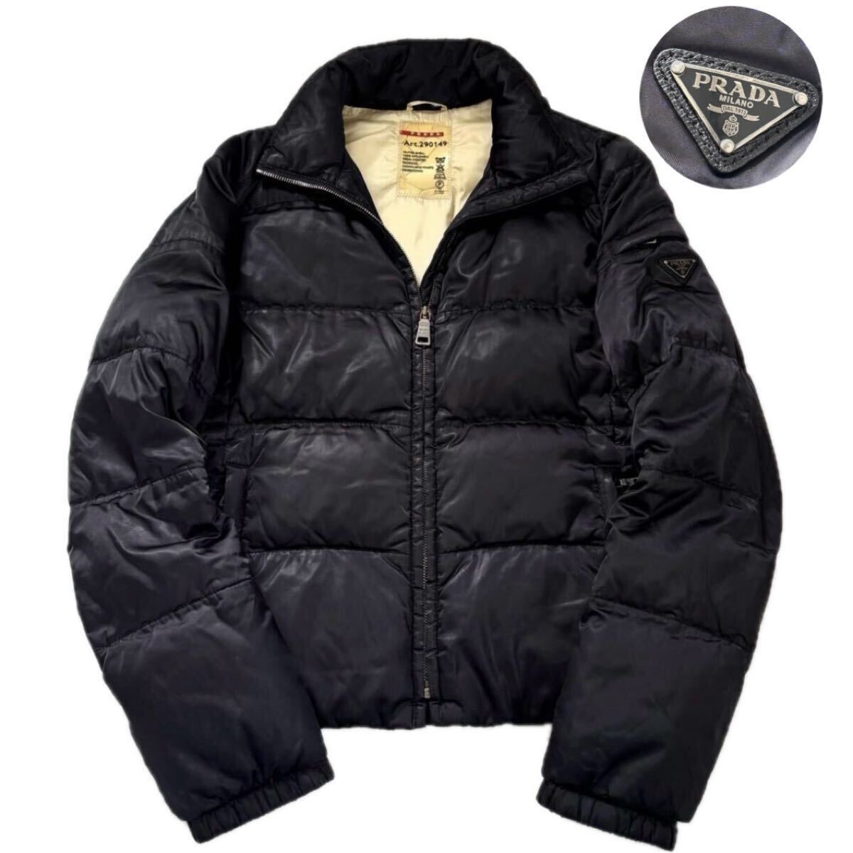 PRADA プラダ スポーツ ダウンジャケット ブルゾン ロゴ 三角プレート ショート丈 40 レディース Lサイズ位 ブラック 黒