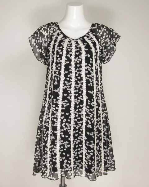 Product name: インタープラネット 黒 白 ハート柄 シフォンワンピース 02