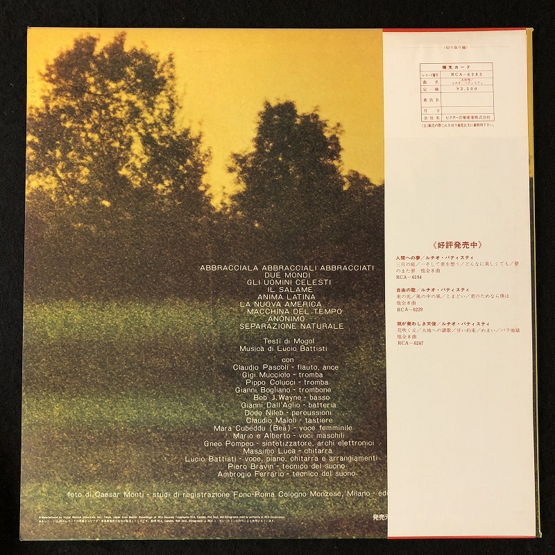 美品 プロモ 見本品 / ルチオ・バティスティ「二大世界」ANIMA LATINA / LUCIO BATTISTI / 帯付き