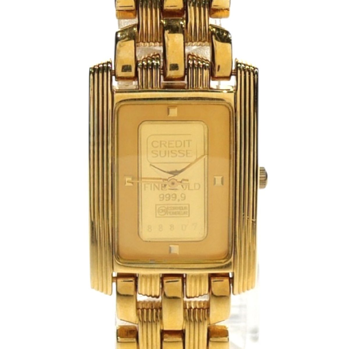 1円スタート 稼働品 CREDIT SUISSE クレディスイス INGOT WATCH インゴットウォッチ FINE GOLD 999.9 クォーツ Qz スクエア ゴールド