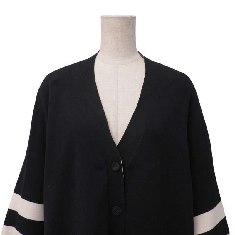 Product name: TI8499〇ル フィル LE PHIL*ライン入り*オーバーサイズ*ドロップショルダー*ニットカーディガン*F*ブラック×ホワイト