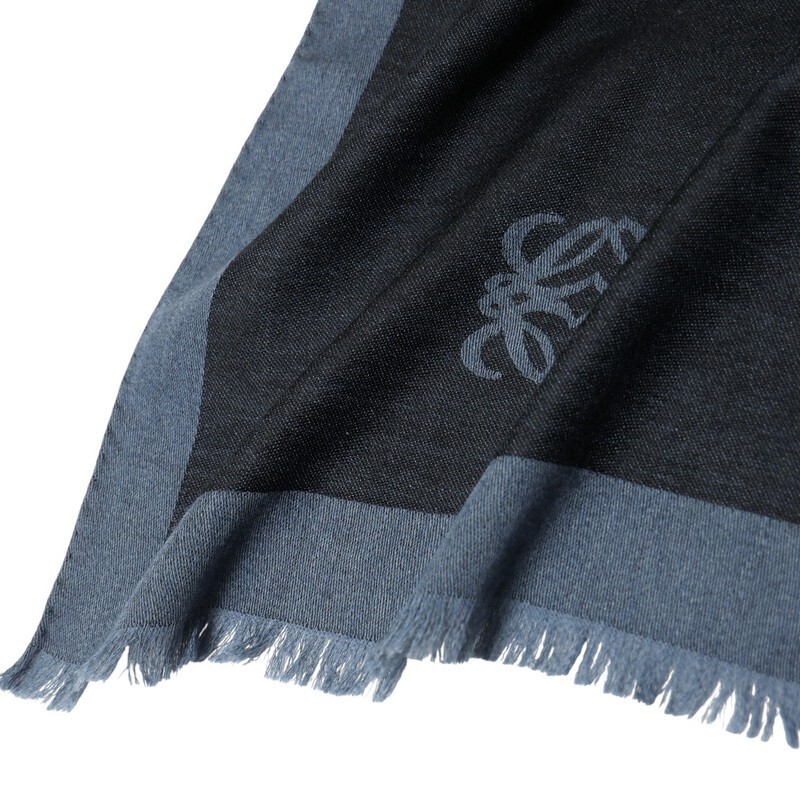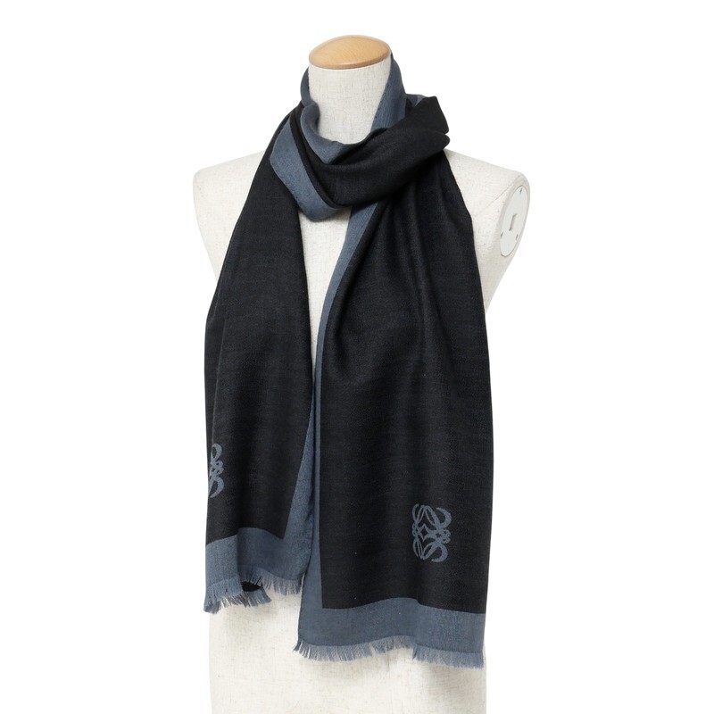 Product name: MH4514*イタリア製 LOEWE ロエベ アナグラム シルクウール ストール ロングスカーフ ショール バイカラー ブルー×ブラック系