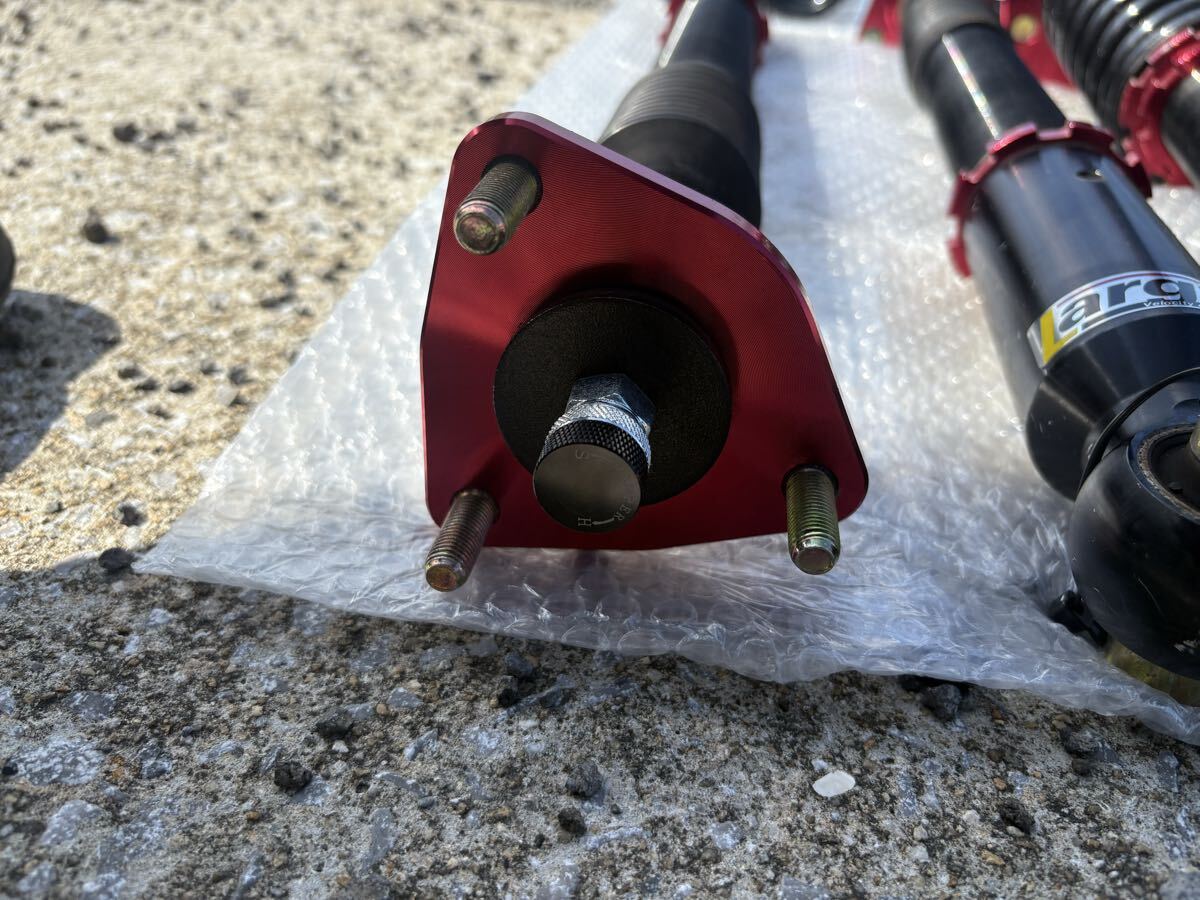 1枚目の写真の右上の部品に白い部品がついていると思いますが、それはまた違う部品の物を車高調の部品と勘違いして写真を撮ってしまった為、その部品は別の物となります。その部品は取り除いています。注意してください。
